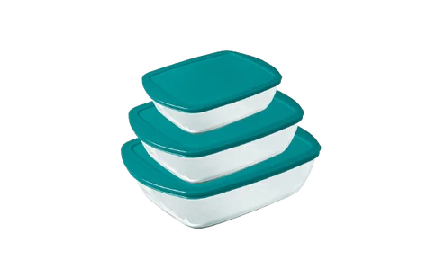 Why choose between aesthetics and practicality when you can have both at the same time? Our set of 3 Pyrex® borosilicate glass storage containers was designed to answer this dilemma, so that you no longer have to choose. An assortment of three sizes in 0.4L, 1.2L and 2.6L decorated with colored lids to choose from between peacock green, red and cherry red. It’s up to you to prepare your meals in advance to easily store in the refrigerator or freezer and to easily reheat (without the lid) in the oven or microwave.