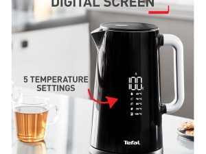 Enjoy hot drinks at just the right temperature; perfectly adapted to every taste, with the Tefal Smart’n Light Digital kettle – the modern, intuitive kettle that is as designed as it is innovative. Featuring a seamless, minimalist digital screen that shows the real temperature of the water inside, the kettle offers a range of five temperature settings from 40°C up to 100°C – perfect for heating water to the perfect temperature depending on your drink. A selection button is available, however for even more ease of use a one touch button is also available to boil straight to 100°C. By no means a small kettle, its generous 1.5L capacity means one boil will allow for many drinks and the 3,000W power boils water in no time, so you’ll never wait long for that much-needed brew. Its double-wall construction keeps heat in while ensuring first a 30-minute keep-warm function so that you can save time and energy, and second a cooltouch surface on the outside, for total safety and peace of mind. Plus, because the jug is cordless and rotates a full 360° on the base, it’s easy to pick up and pour from anywhere on your worktop. Additional convenient features include an automatic lid opening for easy filling and an automatic shut-off for worry-free use.